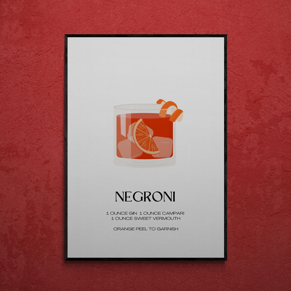 Bej ve Turuncu Vintage İllüstratif Negroni Klasik Kokteyl Sanat Posteri